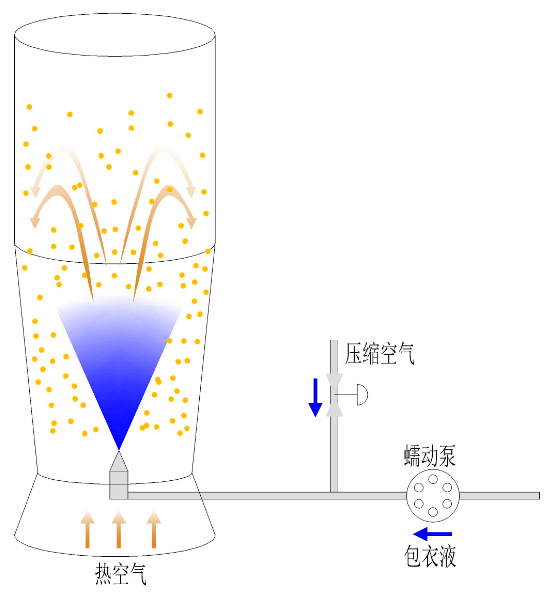 在包衣機中用蠕動泵將包衣液以霧化方式噴到物料上