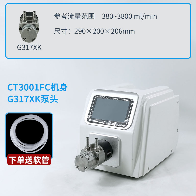 G317XK泵頭(齒輪材質PEEK):出口壓強0.3MPa 參考流量范圍380-3800(ml/min) 適用液體溫度0~200℃