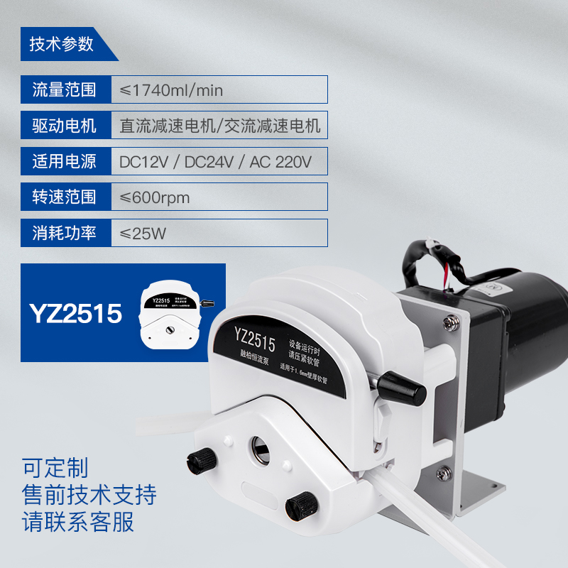 YZ2515泵頭:適用15#、24#軟管 ,最大參考流量,≤1740mL/min,支持1通道